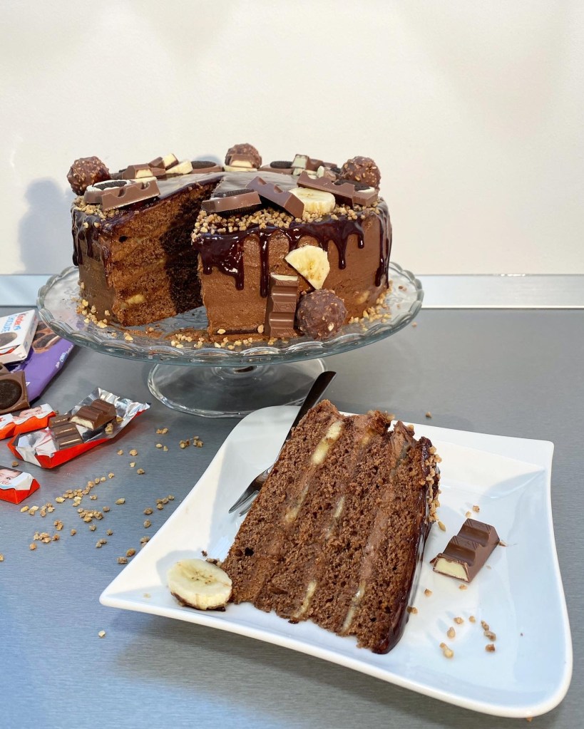 Na kraju lagano umiješajte snijeg od bjelanjaka. Smjesu izvažite te podijelite na 4 jednaka dijela (ako radite 4 kore). Svaku koru pecite 35-40min u zagrijanoj pećnici na 180°C. Čačkalicom provjerite da li je biskvit pečen- kad ništa ne ostaje na čačkalici, pečeno je. Pečeni biskvit premažite toplim mlijekom. Za pojačani okus banane u mlijeko s kojim ćete premazati biskvit možete dodati malo ekstrakta banane ili za pojačan okus čokolade, biskvit premažite toplim kakaom.
