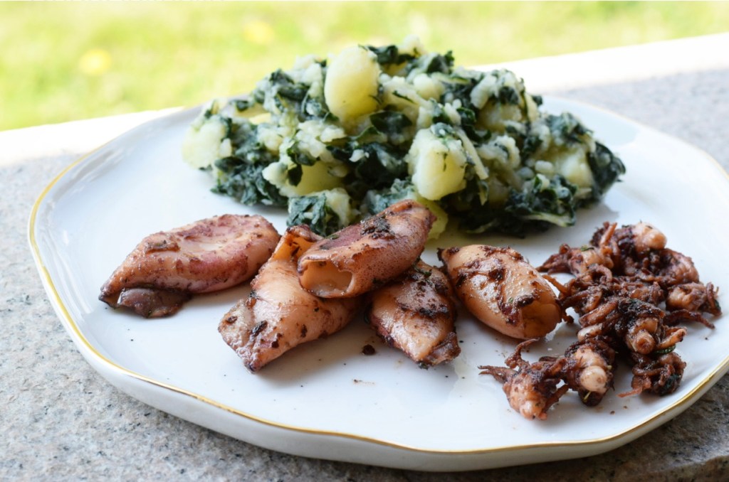 Lignje treba očistiti. Odvojite tijelo od pipaka, izvadite središnju kost i utrobu. Operite ih pod mlazom vode i stavite u cjedilo da se dobro ocijede. Ostavite lignje u marinadi najmanje pola sata, što duže to bolje. Na ugrijanu grill tavu ili roštilj stavite lignje i pecite 5-10 minuta, ovisi o veličini liganja, ali ne predugo jer tada postanu tvrde. Kada ih okrenete premažite ih marinadom.